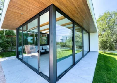 Notre modèle signature combine élégance et praticité avec ses vitres feuilletées coulissantes et ses fixations latérales robustes. Idéale pour agrandir votre espace de vie.