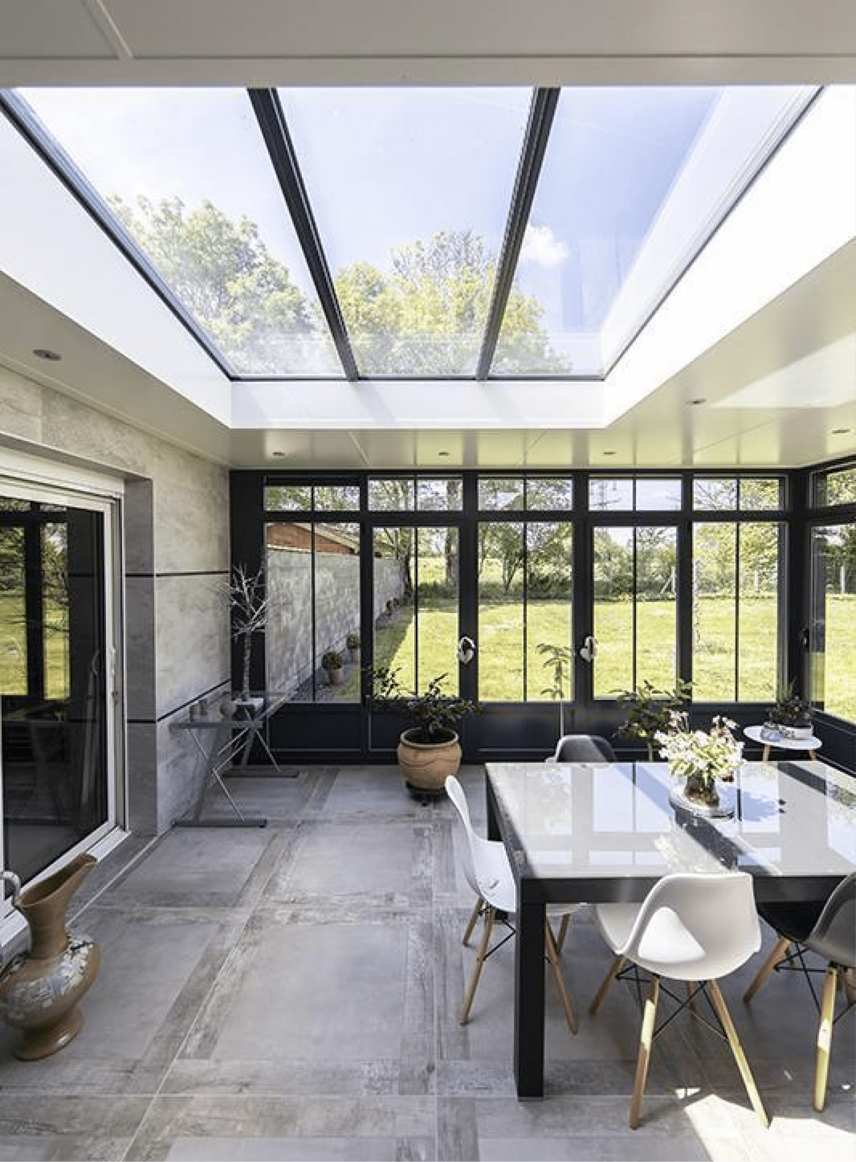 Maximisez la luminosité naturelle avec notre véranda dotée d’un puits de lumière intégré. Une solution innovante pour créer un espace baigné de lumière tout au long de la journée.
